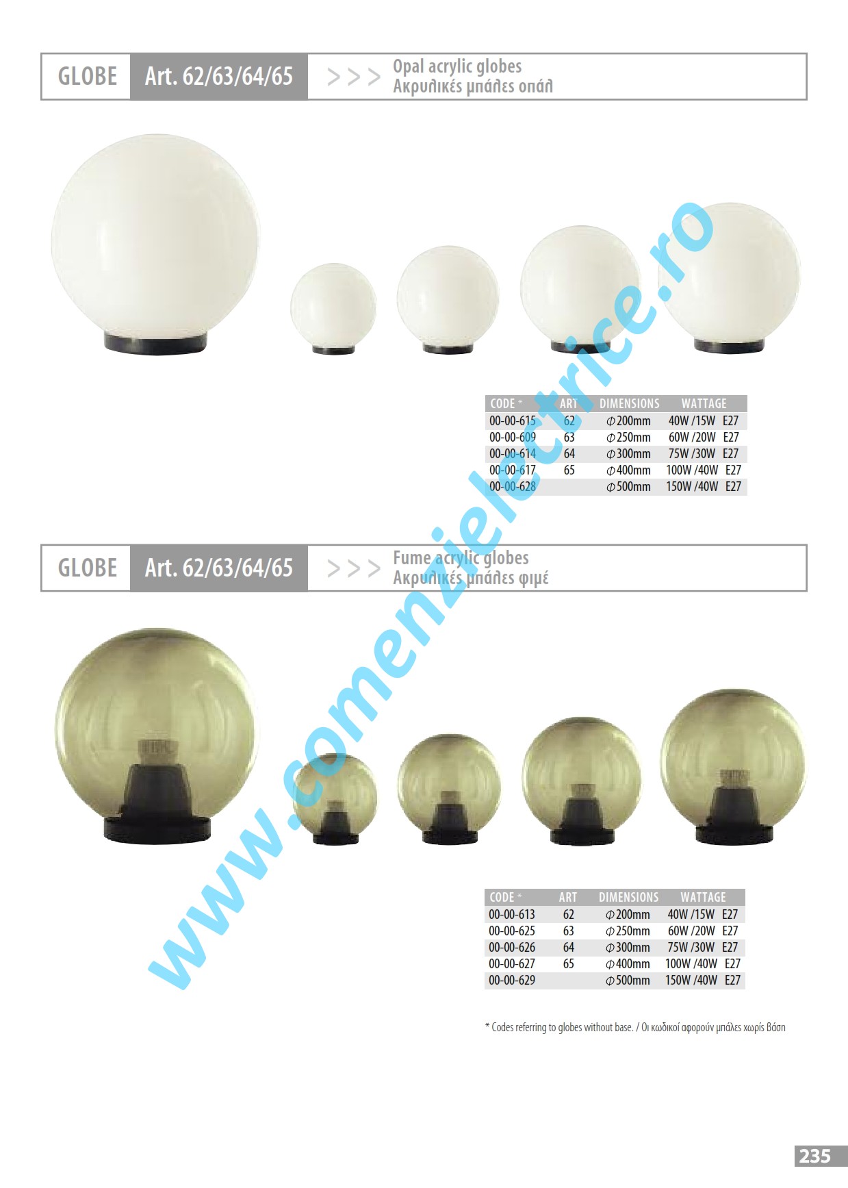 Descriere ProdusGlob laptos 37-007 40 cm+soclu E27 max. 100W Dulie portelan E27 Material acrilic (PMMA) Rezistenta la UV IP 65 |
