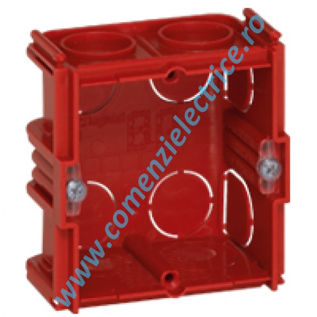 Descriere ProdusDOZA ZIDARIE 1 MODUL AD40 LEGRAND Adancime 40 mm Doza patrata pentru imbinare Pentru aparatele cu gheare sau fixare cu suruburi se pot utiliza mai multe doze monopost prin asociere pentru a forma o doza multipost Montaj orizontal sau vertical Interax 71 mm Permit detasarea peretilor despartitori pentru functii extinse. Se livreaza cu suruburi si capac de protectie. Intrari cabluri predecupate, diametru 16 - 20 -255 Pentru mai multe date tehnice accesati pdf atasat. Avantajele gamei Mosaic Instalare rapida Aproape toate produsele sunt prevazute cu borne automate care garanteaza conexiunea sigura. Programul Mosaic ofera de asemenea sisteme de instalare prin conexiune rapida pentru conexiune, iluminat sau VDI. Instalatii flexibile, adaptabilePentru fiecare configuratie: pardoseli false sau tavane false, programul Mosaic ofera suporturi de echipament diferite, special pentru retele de tensiune si informatii. Usor de utilizat, cu un design curat, atragatorProgramul Mosaic garanteaza compatibilitatea totala intre toate componentele sistemului si acelasi design atragator pentru toata instalatia electrica. Intretinere simplaDiferitele suporturi pentru echipament (coloane, jgheaburi, cutii de pardoseala etc.) simplifica lucrarile si intretinerea la amplasament: pregatire in atelier pentru instalare in ultimul moment, acces facil la cabluri si functii. Produse ecologiceCiclurile de viata ale tuturor solutiilor din Programul Mosaic au fost analizate pentru a reduce impactul acestora asupra mediului inconjurator, de la fabricatie pana la tratamentul de la finalul ciclului de viata. Rezultatele acestor analize sunt prezentate in PEP (Profiluri de mediu ale produselor). Acest simbol va va ajuta sa identificati produsele care contribuie activ la optimizarea utilizarii energiei in cladiri. |
