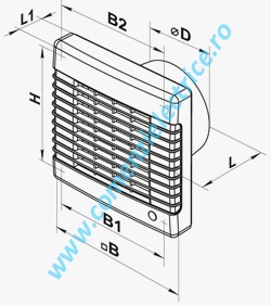 Ventilator casnic axial de perete cu jaluzele automate intrerupator fir timer si senzor umiditate Vents 100 MAVTH